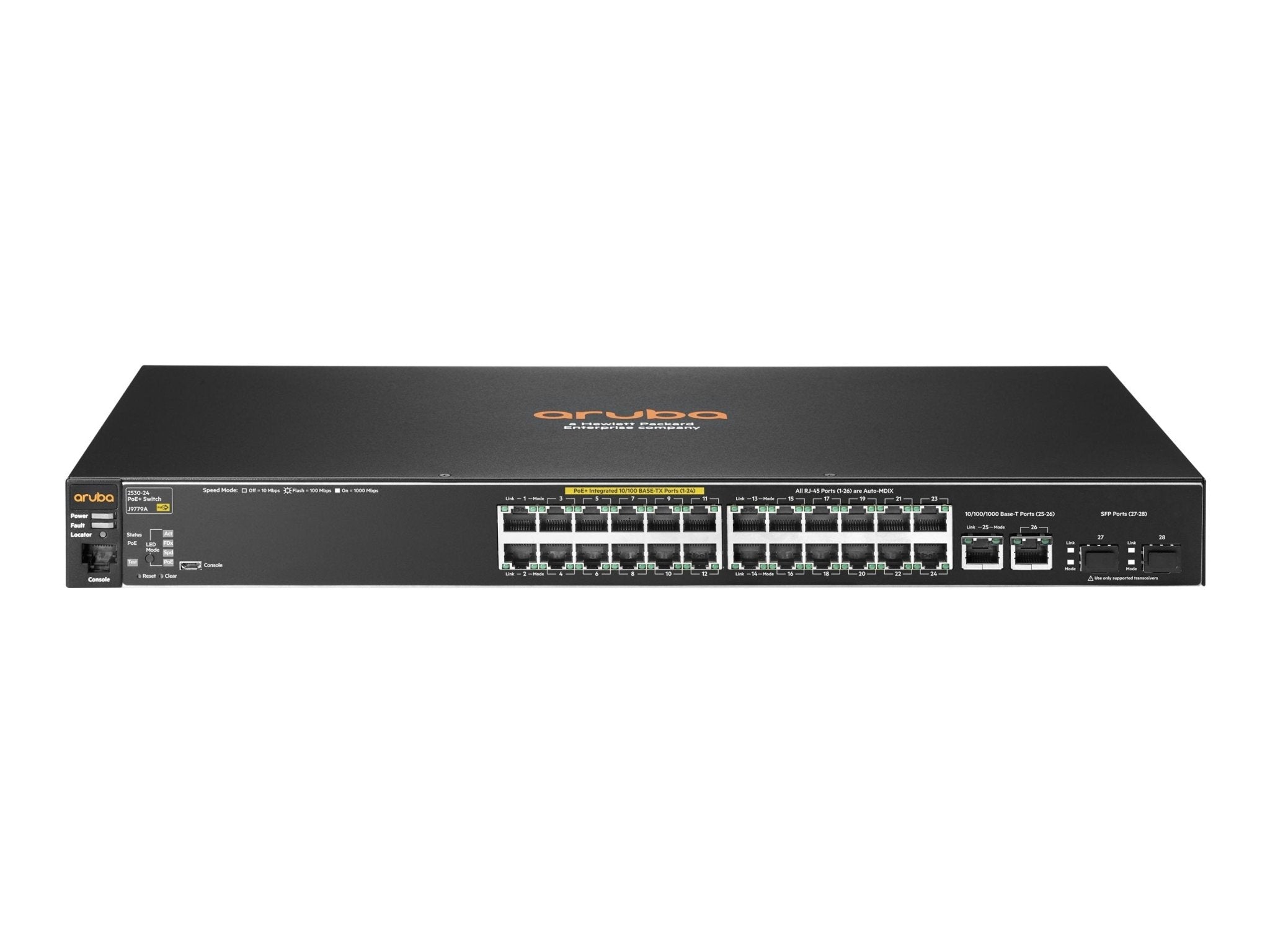 | HPE Aruba 2530-24-PoE+ - Switch - managed - 24 x 10/100 + 2 x Gigabit SFP + 2 x 10/100/1000 - Desktop, an Rack montierbar, wandmontierbar - PoE+ (195 W) |